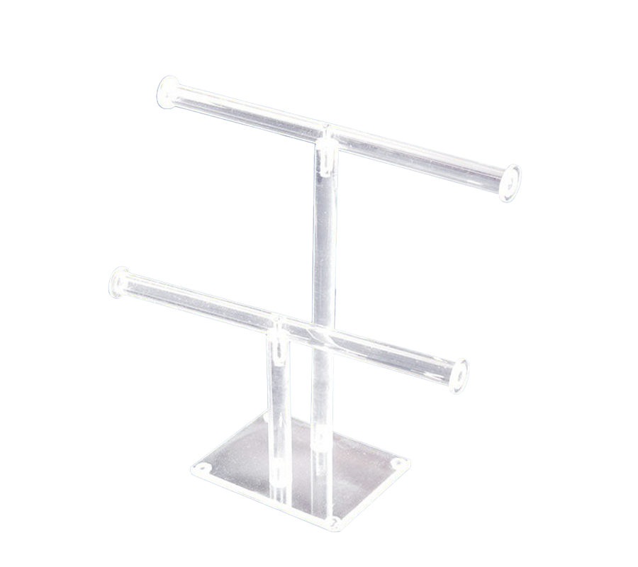 The bracelet bar features a sleek and functional design, ideal for displaying a variety of bracelets and wristwear items. With a tubing bar measuring 5/8" in diameter and 10" in length, it offers ample space to showcase multiple pieces of jewelry attractively. Supported by a sturdy base measuring 4 3/4" in length, 3 3/4" in width, and 1/4" in thickness, the bracelet bar stands securely on display surfaces, ensuring stability and reliability. Its 12" arm provides additional space for arranging bracelets in an organized and visually appealing manner, making it a perfect choice for jewelry displays in retail stores, exhibitions, or personal collections.