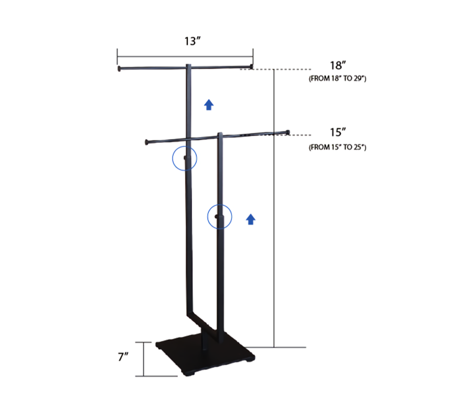 The Jewelry Stand offers adjustable upright features, providing flexibility in displaying various jewelry pieces. With adjustable heights ranging from 15 to 25 inches and 18 to 29 inches, it accommodates different jewelry items and arrangements to suit your display preferences. Supported by a stable 7-inch base, this stand ensures secure placement and minimizes the risk of tipping or instability, even with heavier jewelry pieces. Its simple yet elegant design adds a sophisticated touch to any jewelry display, making it perfect for retail stores, exhibitions, or personal collections. Whether showcasing necklaces, bracelets, earrings, or rings, the Jewelry Stand provides a stylish and functional solution for highlighting your jewelry collection.