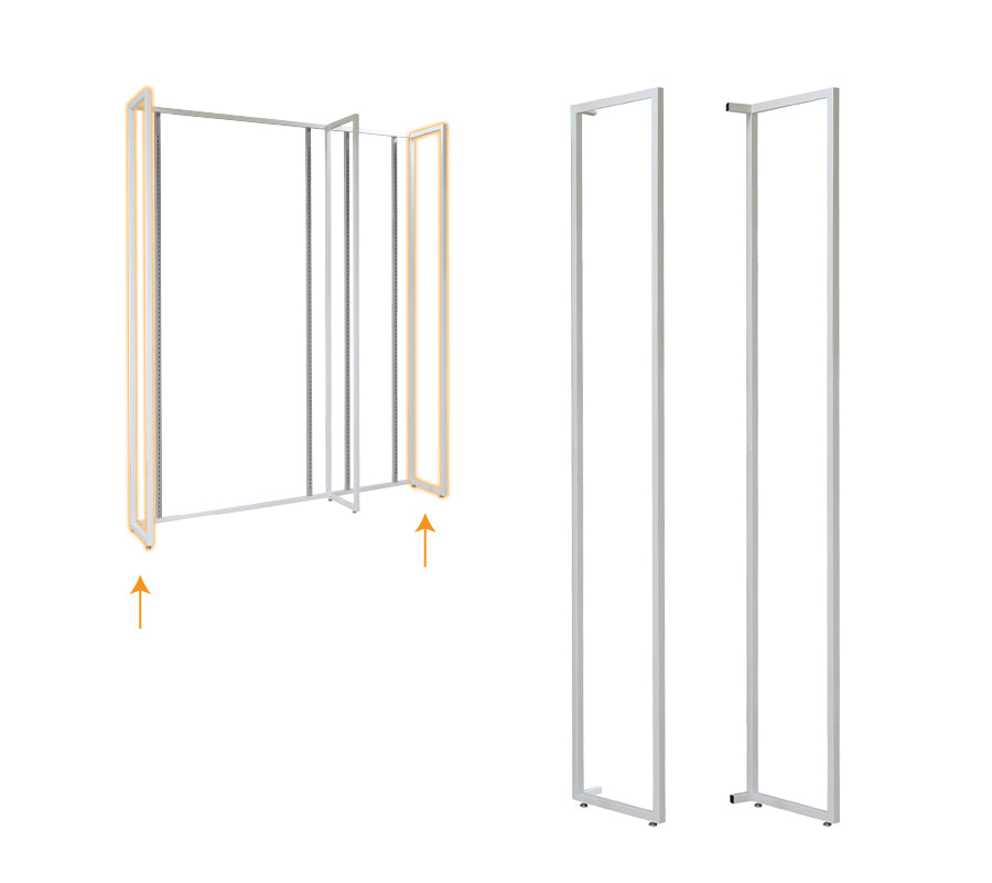 The Left & Right End Caps serve as essential components for finishing off structures with precision and aesthetics. Crafted from 1 1/4" square tubing, these end caps seamlessly integrate into frameworks with dimensions of 96"H x 17"D. Their design ensures a snug fit and adds a polished look to the overall construction. These end caps are crucial for enclosing and securing the ends of structures, providing stability and enhancing the visual appeal of the framework.