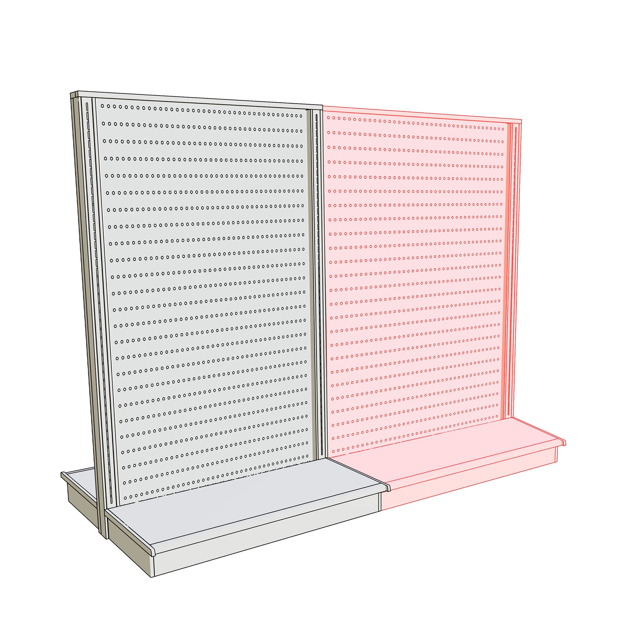 Featuring a 16-inch deep base for additional display capacity, this island display gondola comes in two versions, both measuring 36W x 72H x 35D overall. The starter unit, serving as both a standalone unit and the initial piece for building any length aisle, includes all pegboard panels, 2 vertical slotted uprights, base decks, and fronts. An add-on unit is also available, easily attaching to the starter and expanding your space by 3 feet. Similar to the starter unit, it effortlessly connects using built-in grooves. To create your desired aisle length, for example, a 15-foot long aisle, purchase one 36W starter unit and four 36W add-on units. Assembling these units is straightforward, requiring no tools. Connect 3-foot and 4-foot wide gondola units to achieve nearly any length aisle for your store.