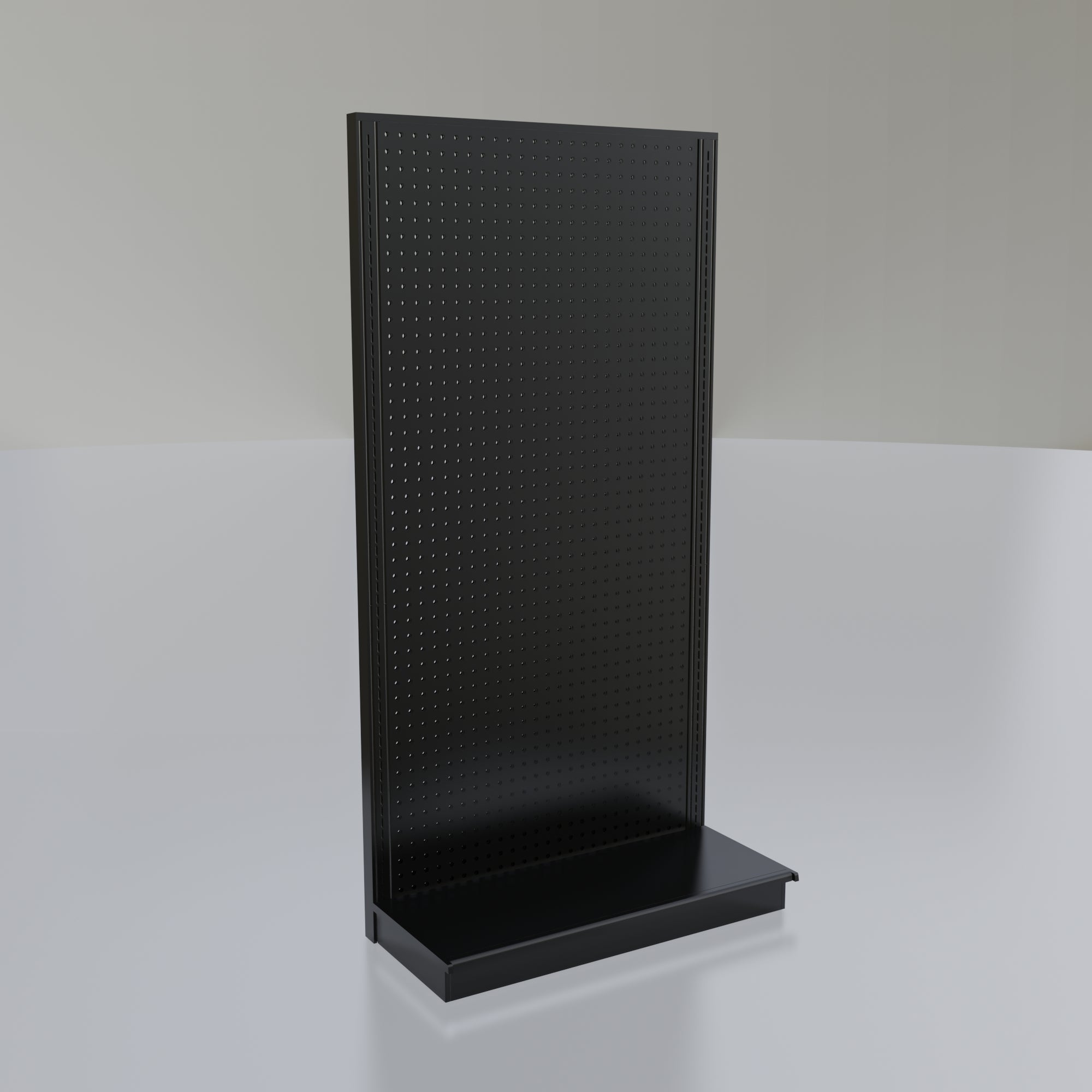 Our single-sided gondola shelving unit is perfect for enhancing wall displays or replacing existing aisle setups. Crafted with a black finished baked-on polyester, it guarantees a long life while minimizing scratches. The 1/4" tempered hardboard pegboard panels and 100% steel slotted uprights make it a sturdy choice. Insert Lozier shelves with a 500 lbs. weight capacity per shelf, ideal for showcasing heavy items like wine bottles in convenience stores and liquor stores. Lozier black metal gondola shelves are available separately. This versatile shelf display unit also accommodates Wholesale Store Fixture's continuous wire baskets, wood crate dump bins, cross bars, peg hooks, and other gondola shelving accessories, each sold separately.